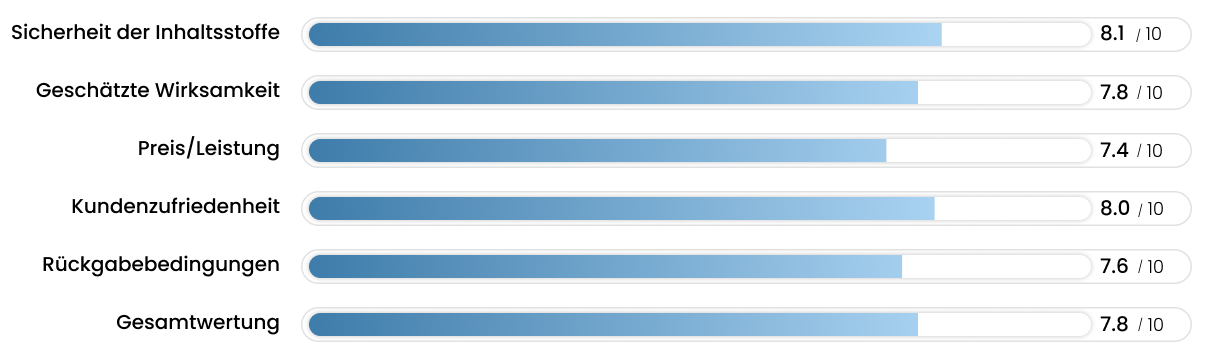 Die deutschen Herstellungsstandards gewährleisten eine gleichbleibende Qualität und Reinheit, und die veganfreundliche Rezeptur kommt verschiedenen Ernährungsgewohnheiten entgegen. Allerdings bleibt die Formel hinter unserem Spitzenprodukt zurück, da ihr L-Glutathion für die wichtige Entgiftungsunterstützung fehlt und wichtige Inhaltsstoffe wie Mariendistel und Curcumin in ihrer Standardform statt in einer Form mit verbesserter Bioverfügbarkeit verwendet werden, was ihre Gesamtwirksamkeit für einen umfassenden Leberschutz und eine umfassende Leberregeneration einschränkt.